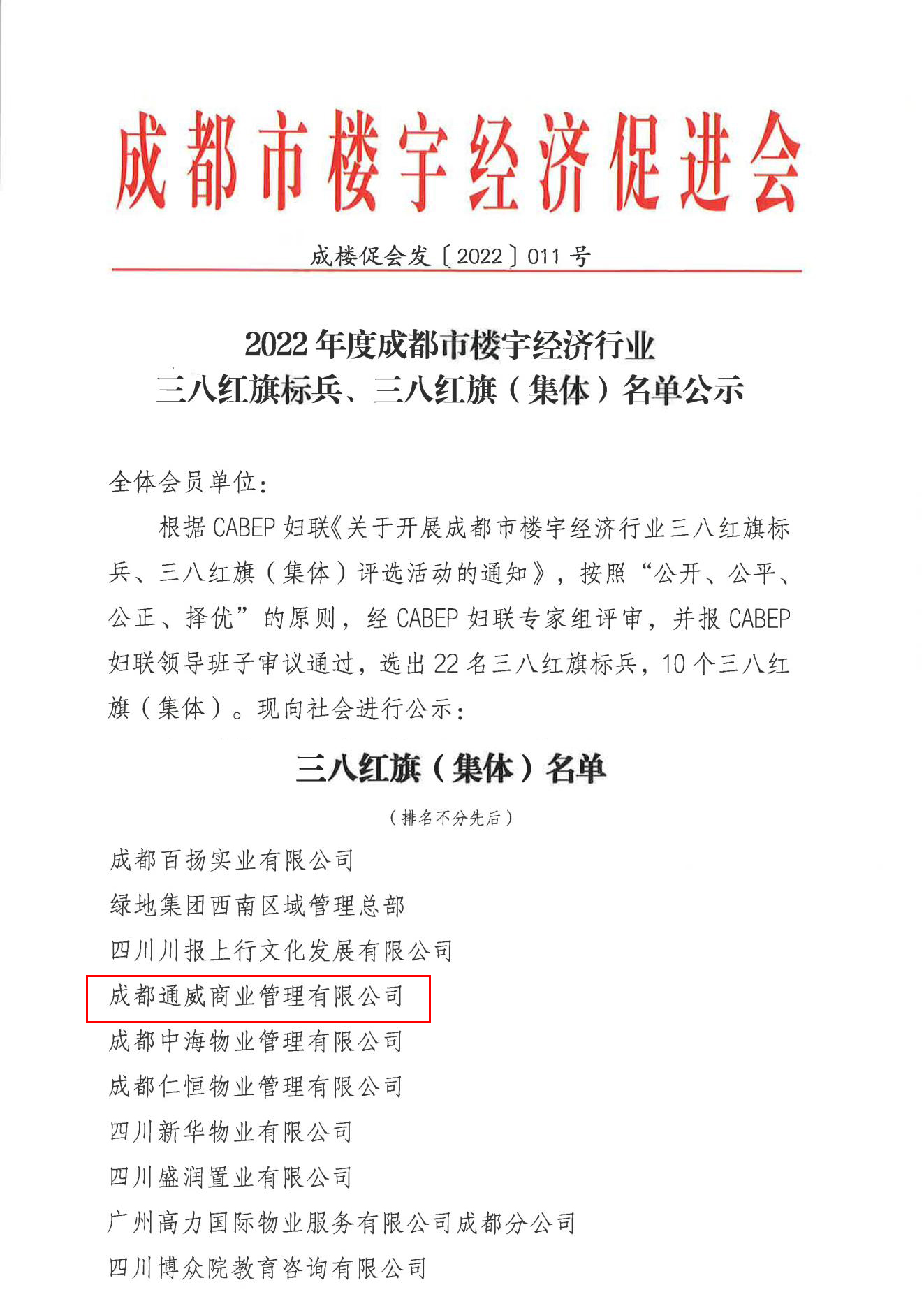通威商管榮獲2022年成都市樓宇經(jīng)濟行業(yè)“三八紅旗集體”