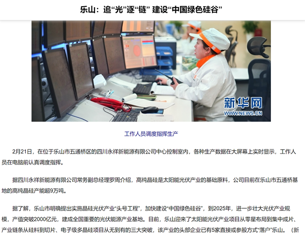 新華網(wǎng)聚焦永祥追“光”逐“鏈”