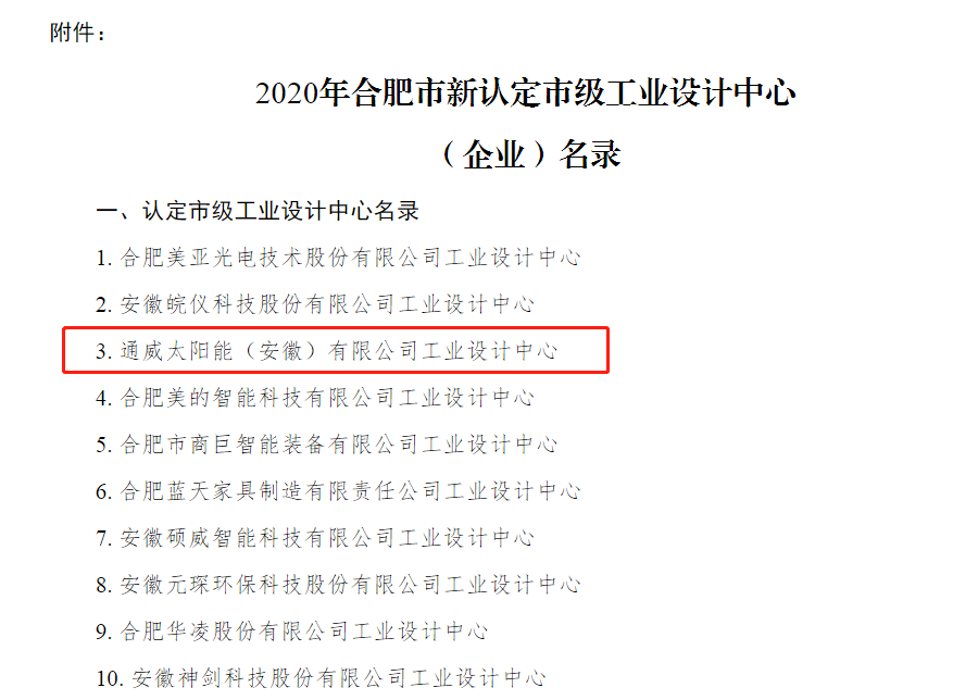 通威太陽能合肥基地榮列市級工業設計中心榜單