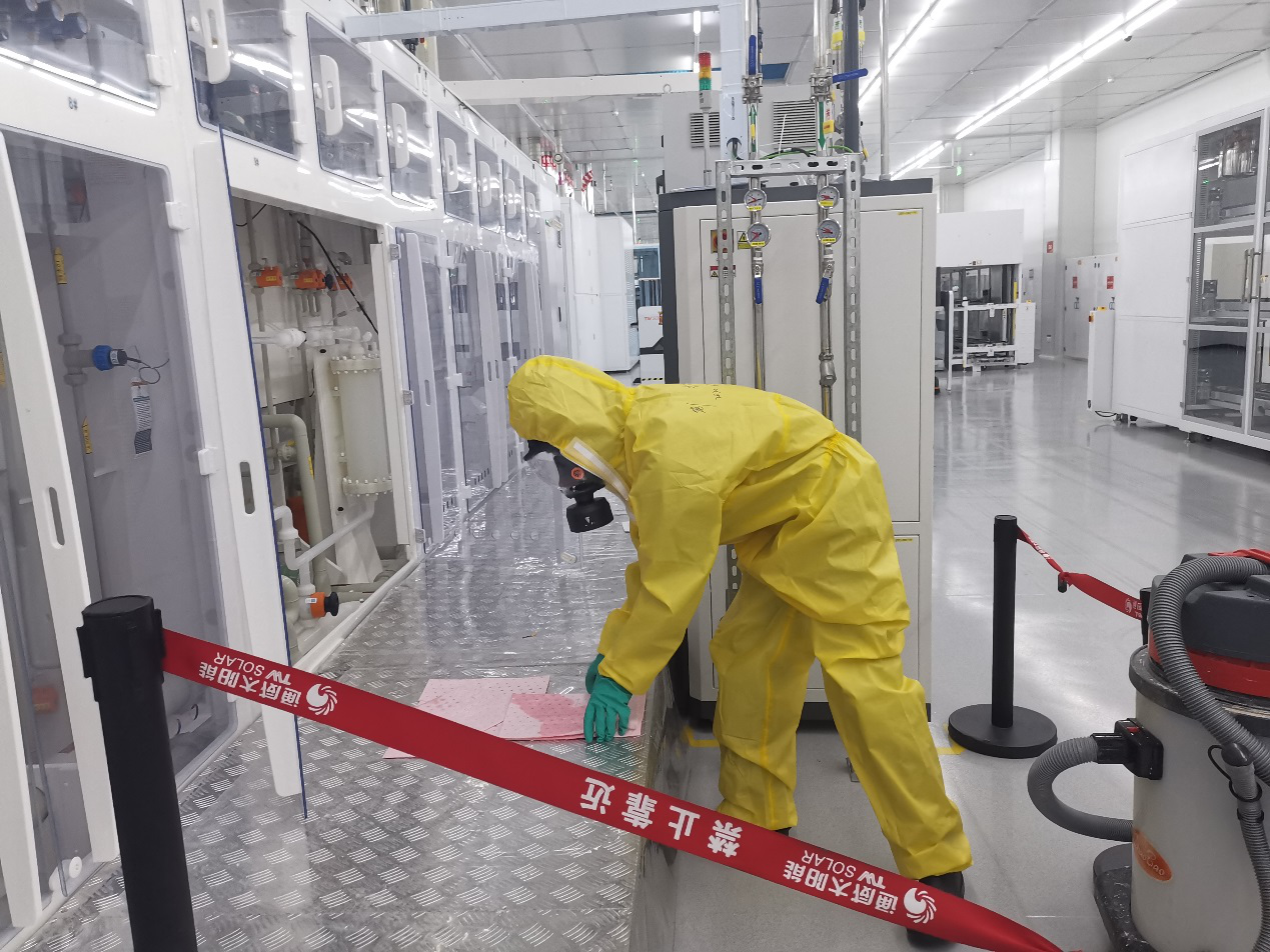 通威太陽能成都公司電池四廠、五廠開展化學品泄露現場應急演練