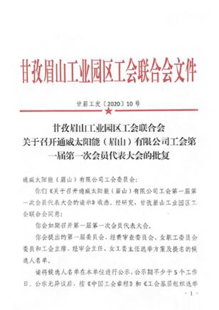 通威太陽能眉山公司正式獲批召開第一屆工會委員會