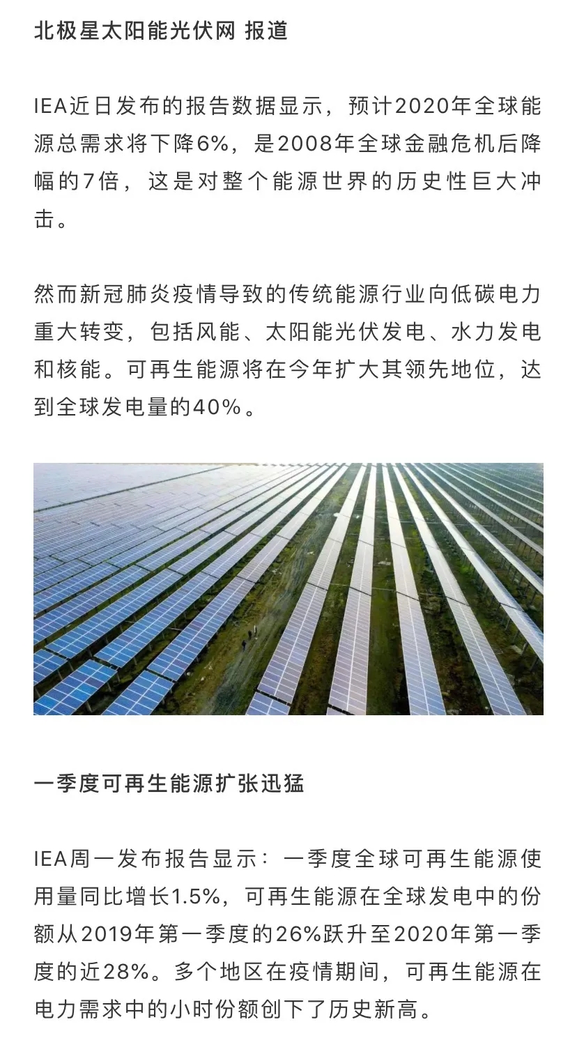 北極星太陽能光伏網:2020年可再生能源將擴大其領先地位,達全球發電量40%