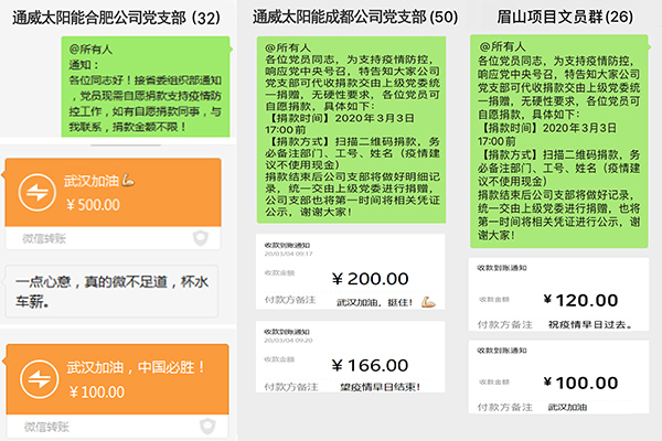 黨員捐款顯初心,助力防疫擔使命!通威太陽能開展“抗擊疫情”愛心捐款活動
