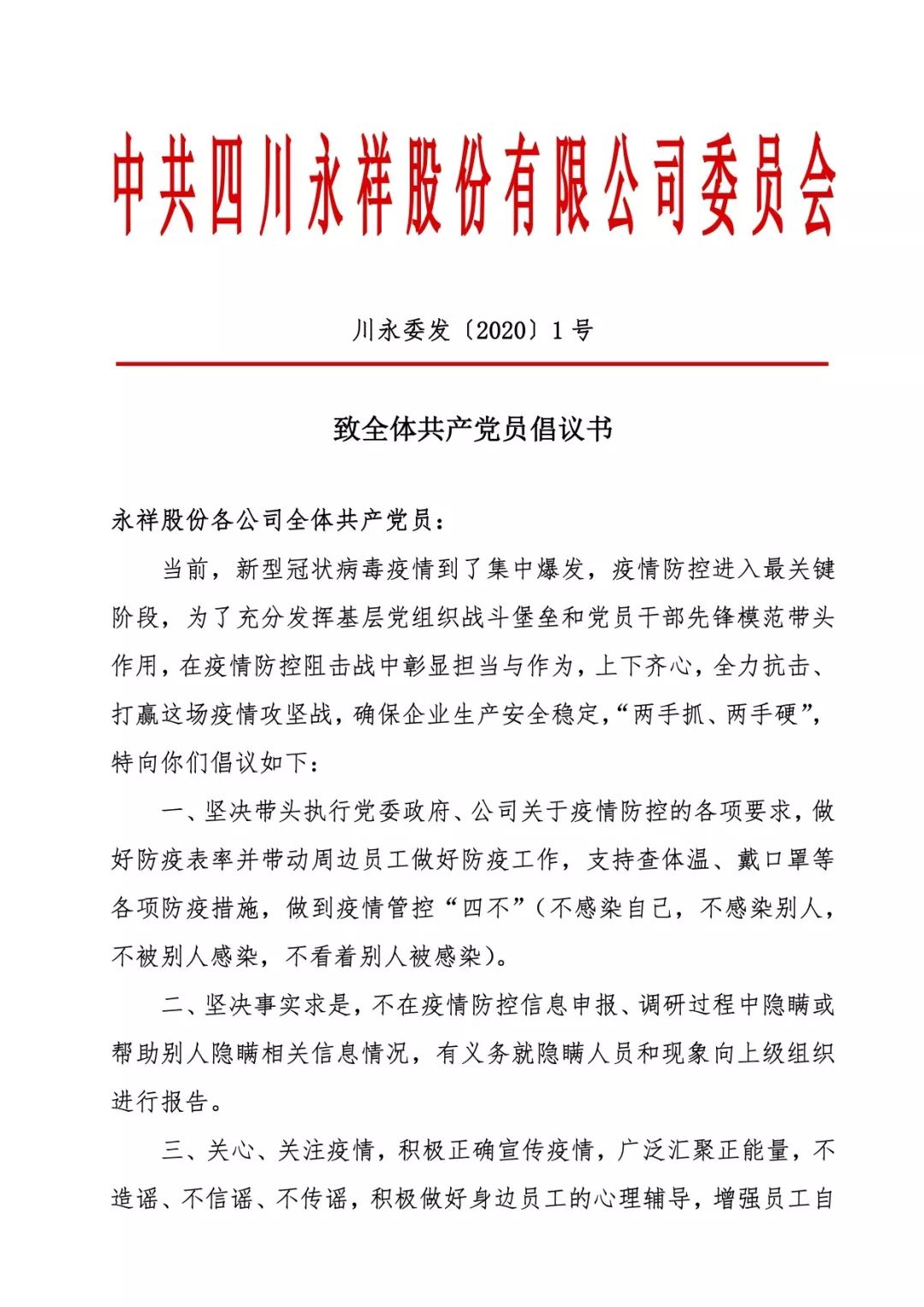 永祥黨委向全體黨員倡議:挑重擔、同防疫、保生產 !