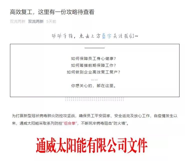 迎接復工,通威管理總部各項籌備工作準備到位!