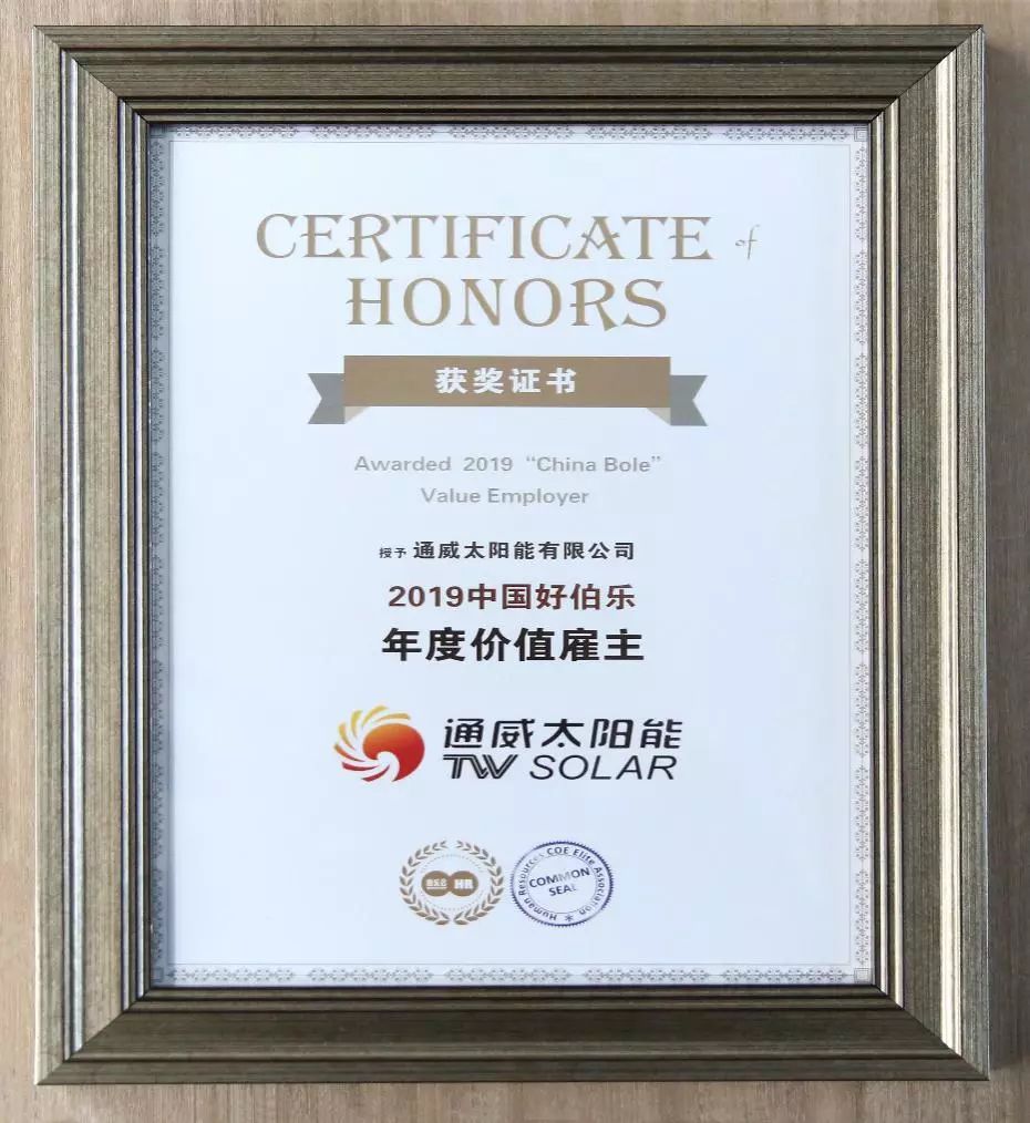 升級特色企業文化建設,通威太陽能榮獲“年度價值雇主”稱號