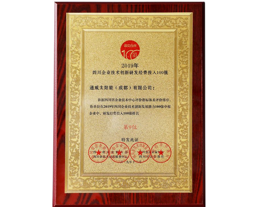 通威太陽能榮獲“四川企業技術創新研發經費投入100強企業”等殊榮