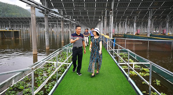 海南省??谑修r業農村局領導考察通威西昌"漁光一體"基地