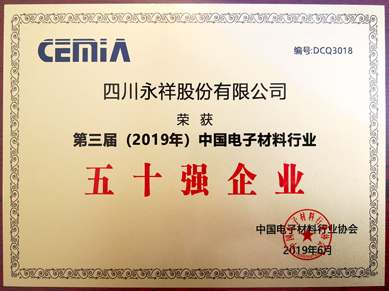 永祥股份榮登中國電子材料五十強企業榜單