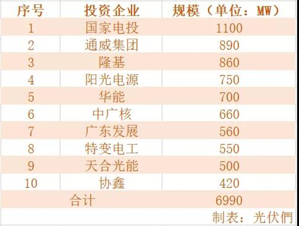 光伏們:國家電投、通威領銜首批光伏平價項目規模