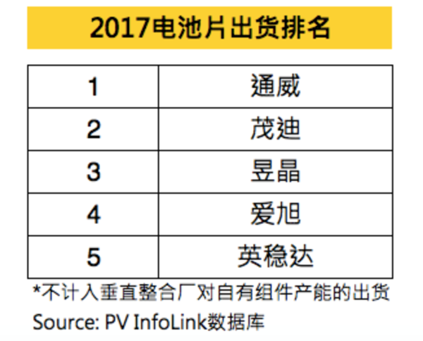 2017電池片出貨排名出爐 通威太陽能超4GW穩居榜首