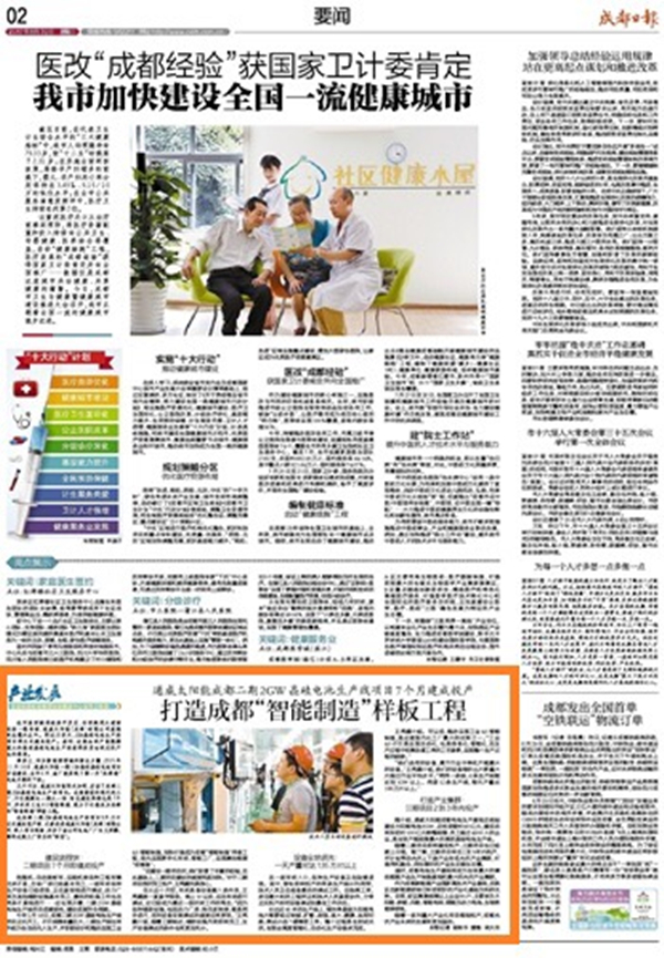 成都“智能制造”樣板工程——《成都日?qǐng)?bào)》點(diǎn)贊通威太陽能二期項(xiàng)目