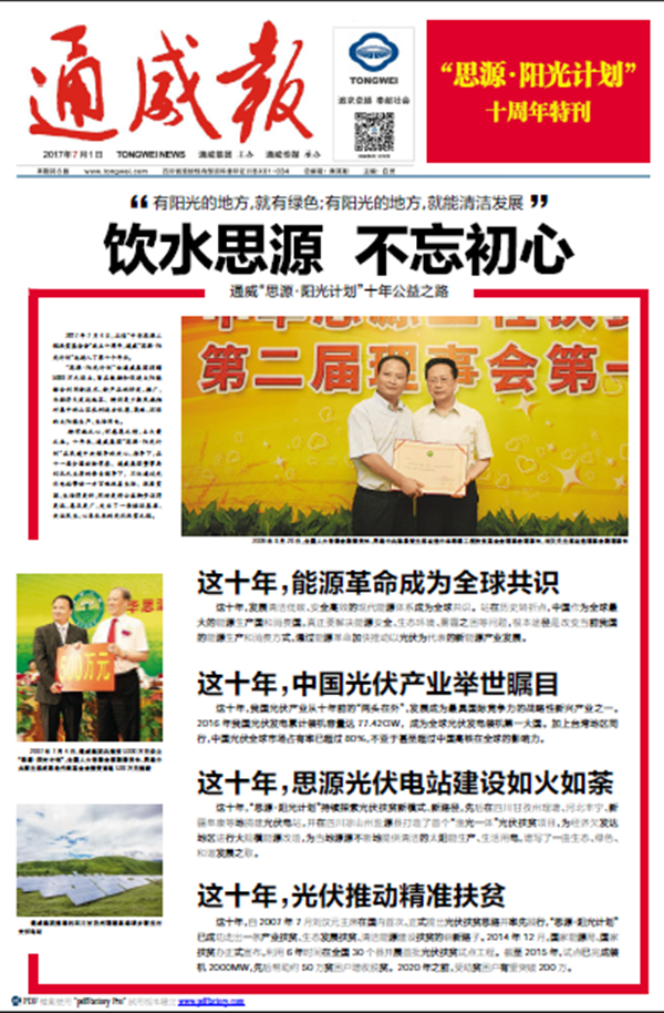 通威“思源•陽光計(jì)劃”十周年特刊隆重出刊