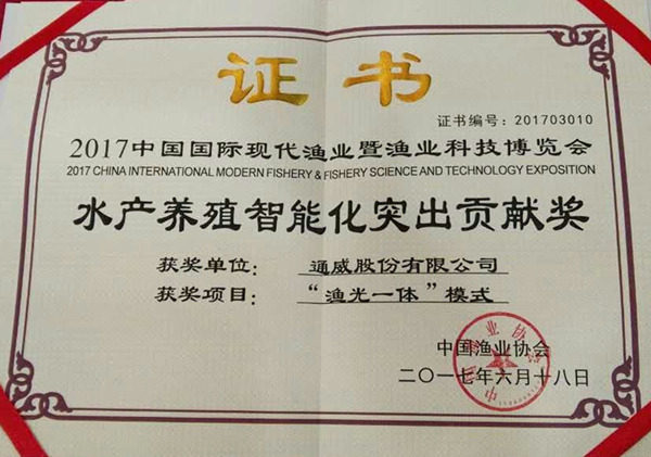 通威“漁光一體”模式榮獲“水產(chǎn)養(yǎng)殖智能化突出貢獻獎”