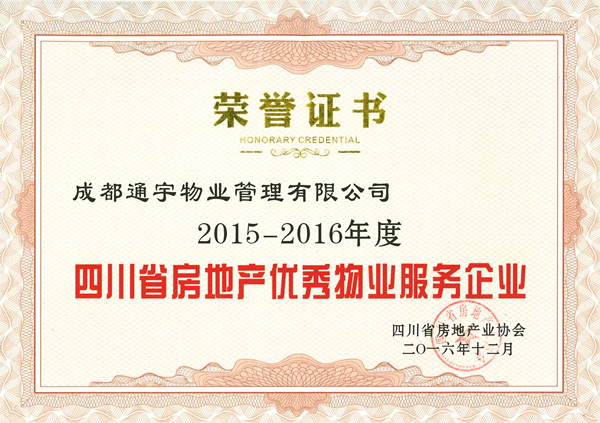 通宇物業榮獲“四川省房地產優秀物業服務企業”稱號