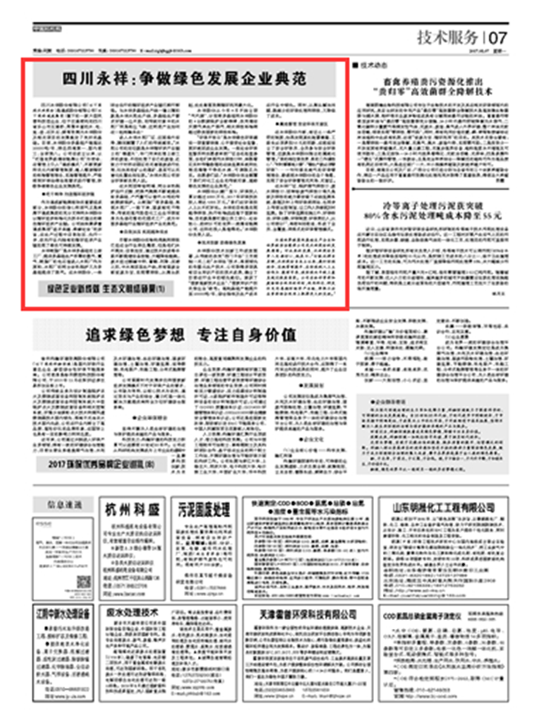 中國環(huán)境報(bào):四川永祥爭做綠色發(fā)展企業(yè)典范