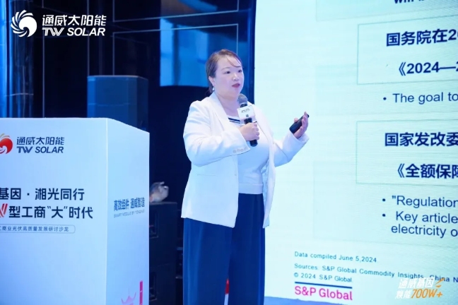 會(huì)議現(xiàn)場(chǎng),來(lái)自標(biāo)普全球、TüV萊茵、中國(guó)能源建設(shè)集團(tuán)湖南省電力設(shè)計(jì)院的權(quán)威專家對(duì)工商業(yè)光伏市場(chǎng)趨勢(shì)、系統(tǒng)安裝設(shè)計(jì)進(jìn)行了詳細(xì)解讀。專家指出,2024年上半年,國(guó)內(nèi)光伏并網(wǎng)量仍然保持強(qiáng)勁態(tài)勢(shì),各省并網(wǎng)量不斷突破。在用電需求逐年攀升、電力供給依賴外部供給的背景下,湖南省具有較大的光伏供電、調(diào)峰需求。