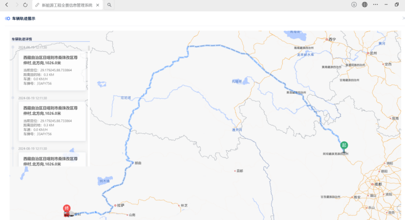 此外,通威緊密配合華電西藏能源有限公司推進其2024年度新能源數(shù)字化建設(shè)。在物資發(fā)運之前,公司率先將詳盡的運輸設(shè)備信息精準錄入華電西藏新能源工程全景信息系統(tǒng)中,實現(xiàn)了運輸車輛軌跡的實時線上可視化查詢,確保了項目發(fā)貨進度的全天候動態(tài)追蹤。這一舉措顯著提升了項目管理的透明度與效率,構(gòu)建了一套完善的項目進程數(shù)字化與精細化管理機制,為保障工程進度的順利推進與項目質(zhì)量的穩(wěn)步提升奠定了基礎(chǔ)。