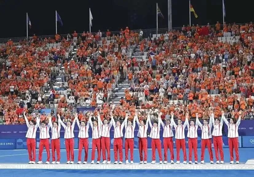 8月9日,巴黎奧運會女子曲棍球金牌賽中,中國隊球員摘得銀牌。新華社記者 鄔惠我攝