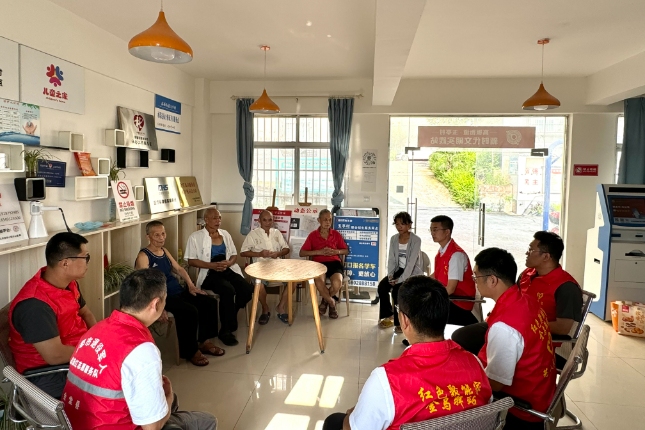 通合公司志愿者代表與玉亭村退伍老兵們圍坐交流
