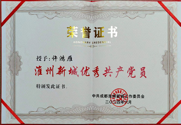 許鴻雁同志榮獲“淮州新城優秀黨員”