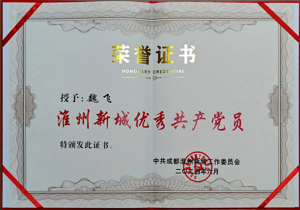 魏飛同志榮獲“淮州新城優秀黨員”