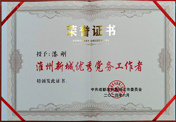 漆剛同志榮獲“淮州新城優秀黨務工作者”