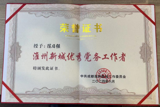 陳日強(qiáng)同志榮獲“淮州新城優(yōu)秀黨務(wù)工作者”