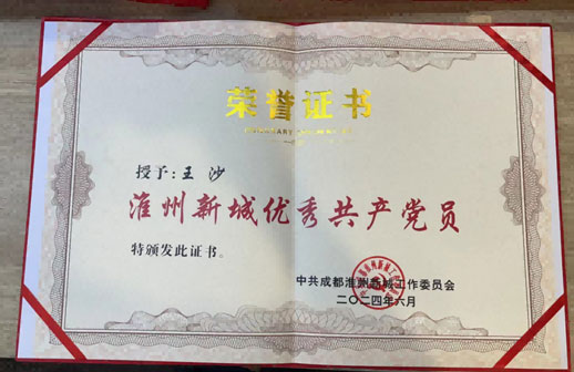 王沙同志榮獲“淮州新城優(yōu)秀共產(chǎn)黨員”