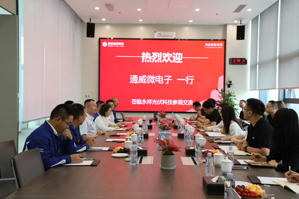 6月18日,通威集團人力資源部長閆嬌率領通威微電子相關負責人到訪永祥光伏科技進行對標學習。永祥光伏科技總經理袁中華,副總經理張軍熱情接待。