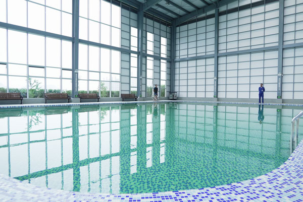 位于體育館旁的永祥新能源游泳館,擁有一個室內泳池和兩個室外泡池,并配備了完善的更衣室、淋浴間和洗手間等基礎設施,旨在滿足公司員工對游泳健身的基本需求。在水質和安全管理方面,該館采用了先進的過濾技術,并設置了泳池循環水處理系統,經過嚴格的水質檢測,確保水質達到健康標準。