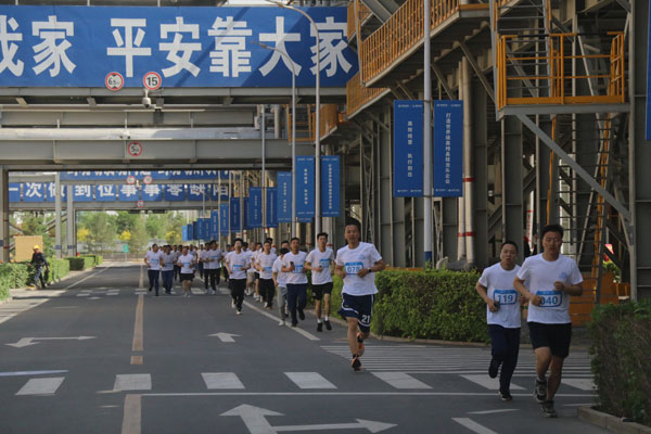 與此同時,在通威綠材(內蒙)項目現場,隨著一聲哨響,參賽人員沿著廠區跑道前行。大家用奔跑的方式共同守護健康,奔向健康生活。全體參跑員工跑出“起步就是沖刺”的拼勁和干勁,以精神抖擻的面貌和只爭朝夕的態度,迎接挑戰、做出成績,在通威綠材(內蒙古)投產百日沖刺關鍵期,跑出高質量,跑出新征程!