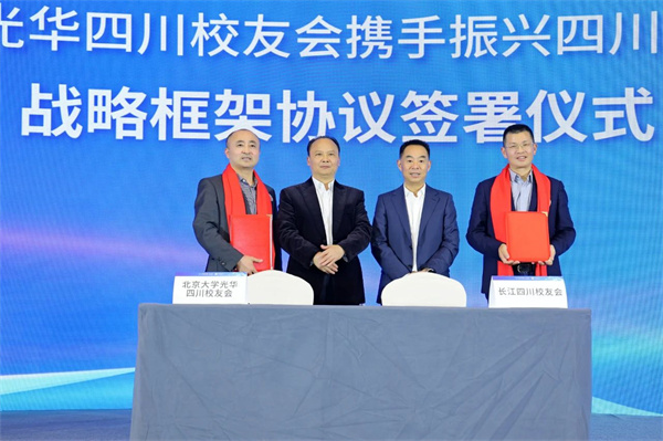 聯(lián)誼會期間,作為北大光華四川校友會會長,劉漢元主席與長江商學(xué)院四川校友會會長黃明良共同上臺見證,北京大學(xué)光華四川校友會秘書長劉京安和長江四川校友會副會長兼秘書長陳建偉分別代表雙方在現(xiàn)場簽署了戰(zhàn)略合作框架協(xié)議。未來雙方將攜手前進(jìn),共同為振興四川經(jīng)濟(jì)積極貢獻(xiàn)智慧和力量。