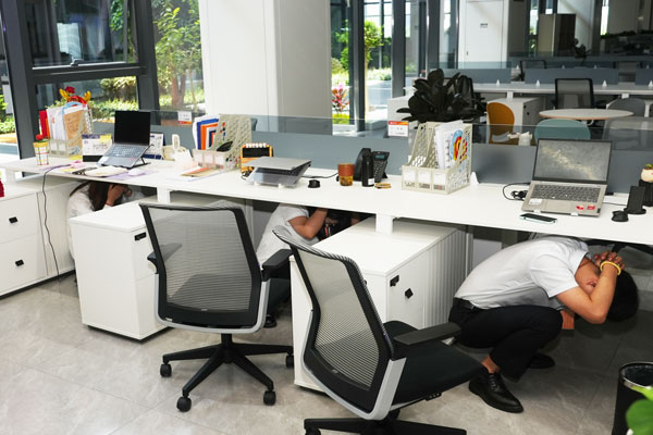 隨著演練開始的信號發出,模擬的地震情景立即啟動。當地震預警響起,所有員工都迅速而有序地按照既定的疏散路線撤離到升旗廣場。在整個過程中,各應急小組顯示出高度的協同作戰能力,從發出警報、組織疏散到醫療救護和后勤保障,每一步都井然有序,嚴格按照預案進行。