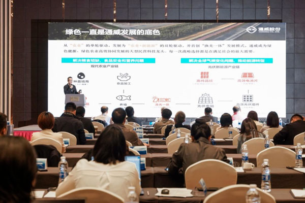 會上,朱子涵博士作“攜手踐行綠色低碳,共創可持續未來”主題分享,并表示,綠色一直是通威發展的底色,通威始終以打造“世界級安全食品供應商”與“世界級清潔能源運營商”為長期戰略規劃,并緊密圍繞公司長期戰略規劃在今年提出了“Together to Win”的可持續發展戰略,意在鼓勵、支持并攜手供應商及合作伙伴共建、共治、共享可持續發展理念,攜手社會各界同仁共贏可持續美好新生活。