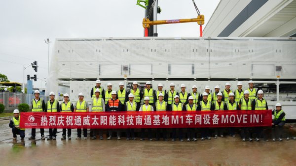 4月28日上午,通威太陽能科技南通基地M1車間迎來了主要生產設備的正式進場。這一重要時刻由通威太陽能科技南通基地組件一廠廠長朱寶平及一眾骨干員工共同見證,彰顯了公司對該項目的高度重視。