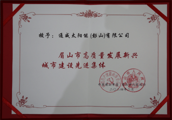 近日,通威太陽(yáng)能(彭山)公司被授予“眉山市高質(zhì)量發(fā)展新興城市建設(shè)先進(jìn)集體”的榮譽(yù)稱號(hào)。這一榮譽(yù)不僅凸顯了彭山公司在眉山天府新區(qū)的杰出表現(xiàn),也充分展示了彭山公司在推動(dòng)眉山市高質(zhì)量發(fā)展和新興城市建設(shè)方面邁出的堅(jiān)實(shí)的步伐和取得的顯著成就。