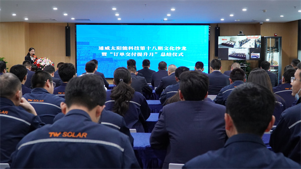 本次活動以全體參會人員起立,齊唱《通威之歌》拉開序幕。隨后集體觀看訂單交付主題VCR,短片從供應端、制造端到客戶端全面呈現(xiàn)通威太陽能科技公司各環(huán)節(jié)的高效協(xié)同能力。隨后,計劃運營管理部對2024年“訂單交付提升”工作進行宣貫,分享訂單交付提升月的活動內(nèi)容與成果,闡釋年度交付目標達成解析與挑戰(zhàn)認知。