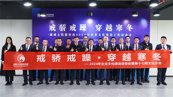 本次活動(dòng)以全體參會(huì)人員起立,齊唱《通威之歌》拉開(kāi)序幕。隨后播放主題VCR,回顧通威發(fā)展,乘時(shí)代東風(fēng)能源轉(zhuǎn)型,面臨行業(yè)寒冬戒驕戒躁,穩(wěn)扎穩(wěn)打,苦練內(nèi)功,夯實(shí)基本功,增強(qiáng)競(jìng)爭(zhēng)力,共度寒冬,展望未來(lái)。隨后,光伏學(xué)習(xí)中心對(duì)2024年通威太陽(yáng)能科技企業(yè)文化建設(shè)方案進(jìn)行宣貫,通威太陽(yáng)能科技將深度聚焦集團(tuán)企業(yè)文化“戒驕戒躁,穿越寒冬”主題,積極響應(yīng)六大主線活動(dòng),成立企業(yè)文化建設(shè)專項(xiàng)工作組,從方法論出發(fā),運(yùn)用機(jī)制保障,通過(guò)文化宣傳賦能、特色文化欄目打造文化傳播矩陣;通過(guò)學(xué)習(xí)植入、核心價(jià)值觀牽引,從“頂層設(shè)計(jì)”到“具體實(shí)踐”,從“宏大儀式”到“微觀感受”將文化工作全面落地。