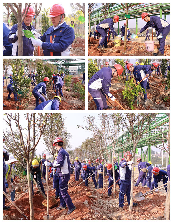 陽光明媚,新綠初綻,植樹填綠正當時。為深入貫徹生態(tài)文明建設理念,牢固樹立和踐行“綠水青山就是金山銀山”的綠色發(fā)展思想,進一步打造云南通威森林式花園工廠,3月12日,云南通威組織開展“植此青綠,共樹未來”植樹節(jié)主題活動。永祥股份副總經(jīng)理、云南通威總經(jīng)理杜炳勝及全體總經(jīng)辦領導、部門工段管理干部出席,公司員工共150余人參加活動。