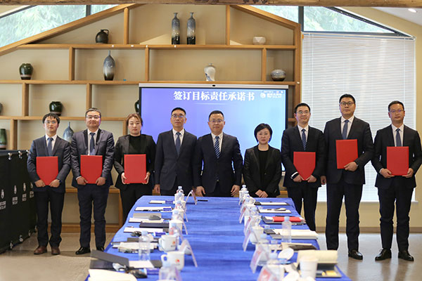 會上,戰略發展部結合當前形勢對2024年光伏行業發展現狀與趨勢進行研判分析,財務部對2024年經營目標與生產指標分解情況進行匯報。各基地、各管理平臺部門則圍繞重點工作進行匯報及討論。針對經營目標的每一項關鍵挑戰,管理團隊群策群力,就經營目標分解達成共識,簽署了2024年經營目標責任承諾書,并就設備管理委員會、能源管理委員會等專項工作進行研討。