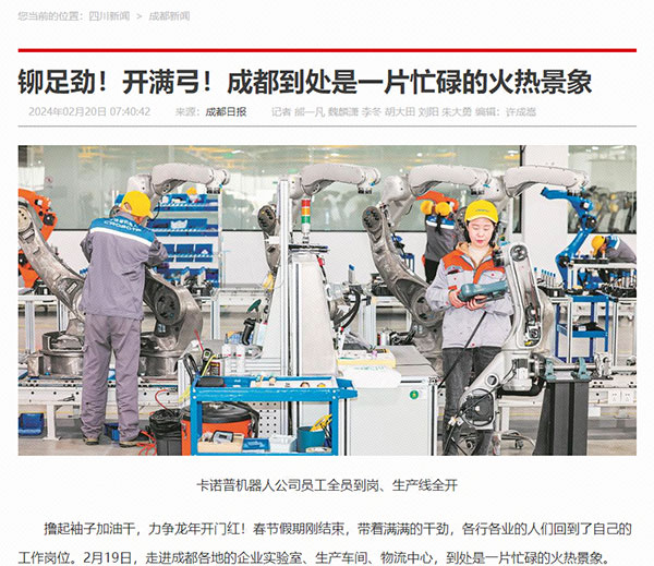 擼起袖子加油干,力爭龍年開門紅!2月20日,成都日報以“開工!滿弓!”為題,聚焦通威太陽能春節節后復工復產生產場景,獲得人民網、四川新聞網等多家主流媒體轉載報道。