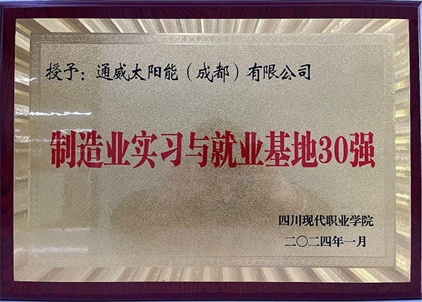 通威太陽能雙流基地獲授四川現代職業學院“制造業實習與就業基地30強”