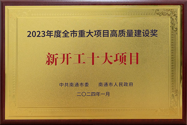 近日,通威太陽能科技南通基地憑借2023年度取得的卓越成績,被授予南通市2023年度全市重大項目高質量建設獎“新開工十大項目”榮譽。