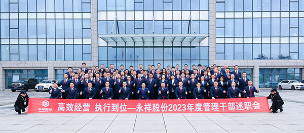 李總對永祥股份各公司管理干部以及全體永祥人一年的辛勤努力表示感謝,并回顧了永祥2023年經營發展情況,表示沒有全體永祥人的共同努力就沒有永祥2023年的成績和榮耀。2023年各部門全年工作思路清晰、目標明確、措施有力,經營結果有效,各部門管理人員能力有很大提升和改進。李總傳達劉漢元主席在永祥核心管理干部述職會上的新目標和要求,指出要不斷增強各部門管理工作,優化人才和團隊培養,強化標準化工作執行,集中技術和管理的優勢,真正實現攻堅克難。