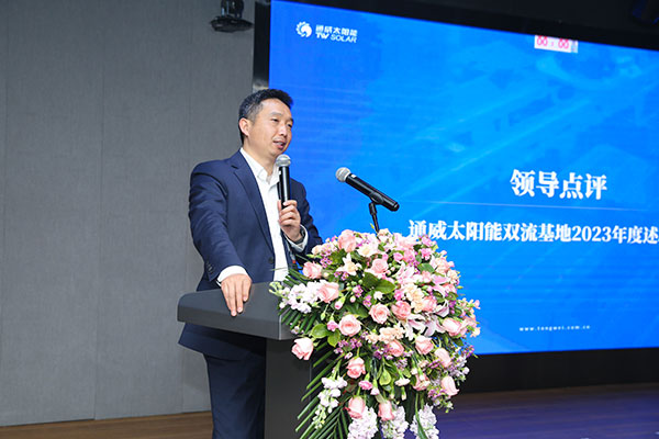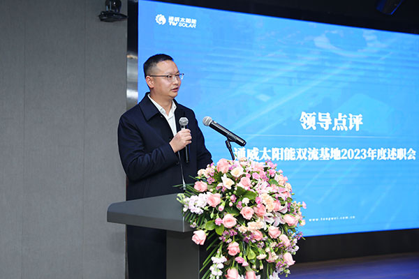 徐濤總首先對雙流基地干部在2023年做出的努力表達感謝,并鼓勵各位干部在2024年制定更高的目標,實現高成長,達到高業績。他指出,全員要培養發散性思維和突破性思維、積累專業知識、加強標準化建設,繼續為通威太陽能在光伏行業的領航發展添磚加瓦。