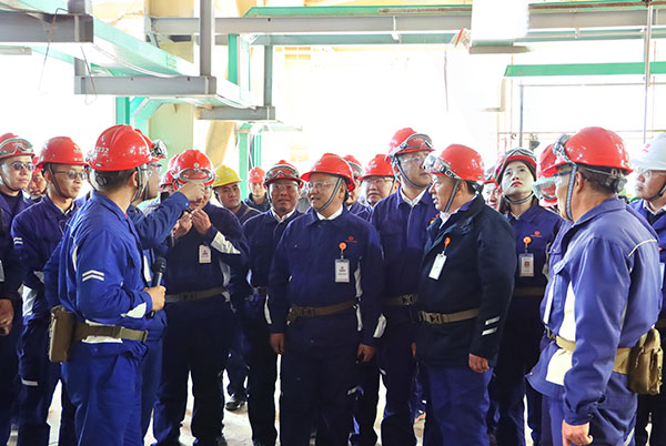 12月27日,通威股份副總裁、永祥股份總經理李斌視察云南通威一期生產現場、二期建設現場,永祥股份副總經理、云南通威總經理杜炳勝等領導陪同,云南通威全體管理干部熱情接待。