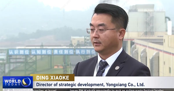 中國國際電視臺記者在永祥新能源廠區(qū)現(xiàn)場報道