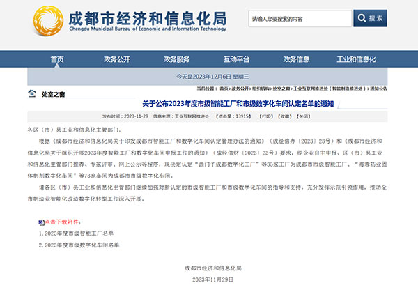 近日,成都市經濟和信息化局公布了《2023年度市級智能工廠和市級數字化車間認定名單的通知》,共有35家智能工廠,73家數字化車間獲得認定,其中通合新能源被評為2023年度“成都市智能工廠”。