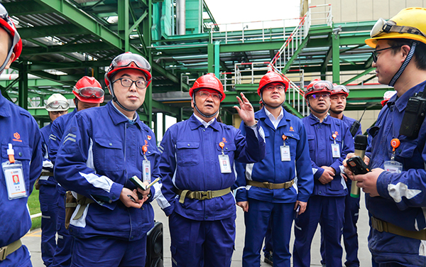 李總帶隊深入裝置現場,對目視化、設備可靠性、管道是否有銹蝕情況、消防安全設施是否存在隱患等進行檢查。李總對現場管理以及現場目視化標準提出表揚,同時抽查班組成員硅粉添加管線的風險識別以及應急處置能力,員工根據操作步驟分析每一步操作存在的風險以及異常情況下應急處置步驟。